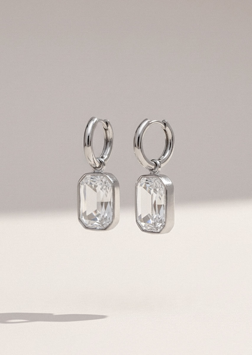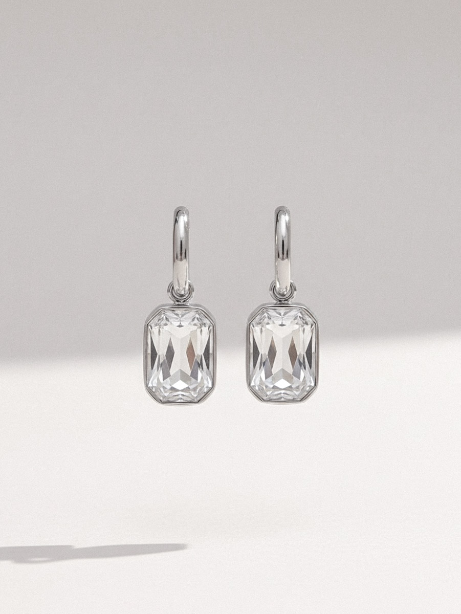 בית » חנות » כל התכשיטים » עגילים » עגילי תליון קריסטל מלבני כסף